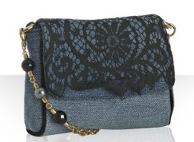 Dolce & Gabbana Denim Lace Beaded Shoulder Bag